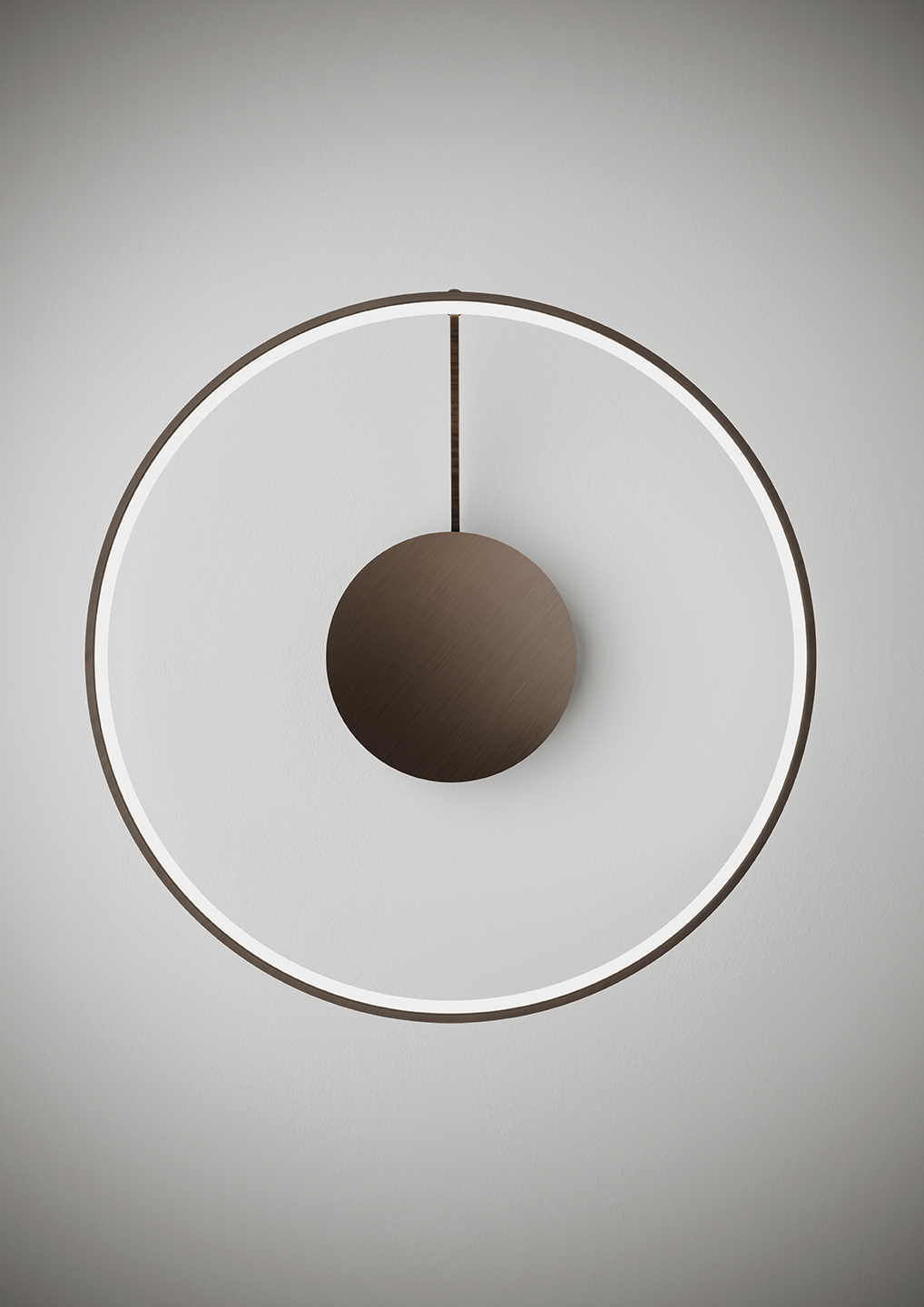 Lampada a parete o soffitto nella forma tonda in alluminio diametro cm.55 verniciato colore Bronzo Spazzolato, rosone in tinta, alimentatore a bordo. 2668 lumen.