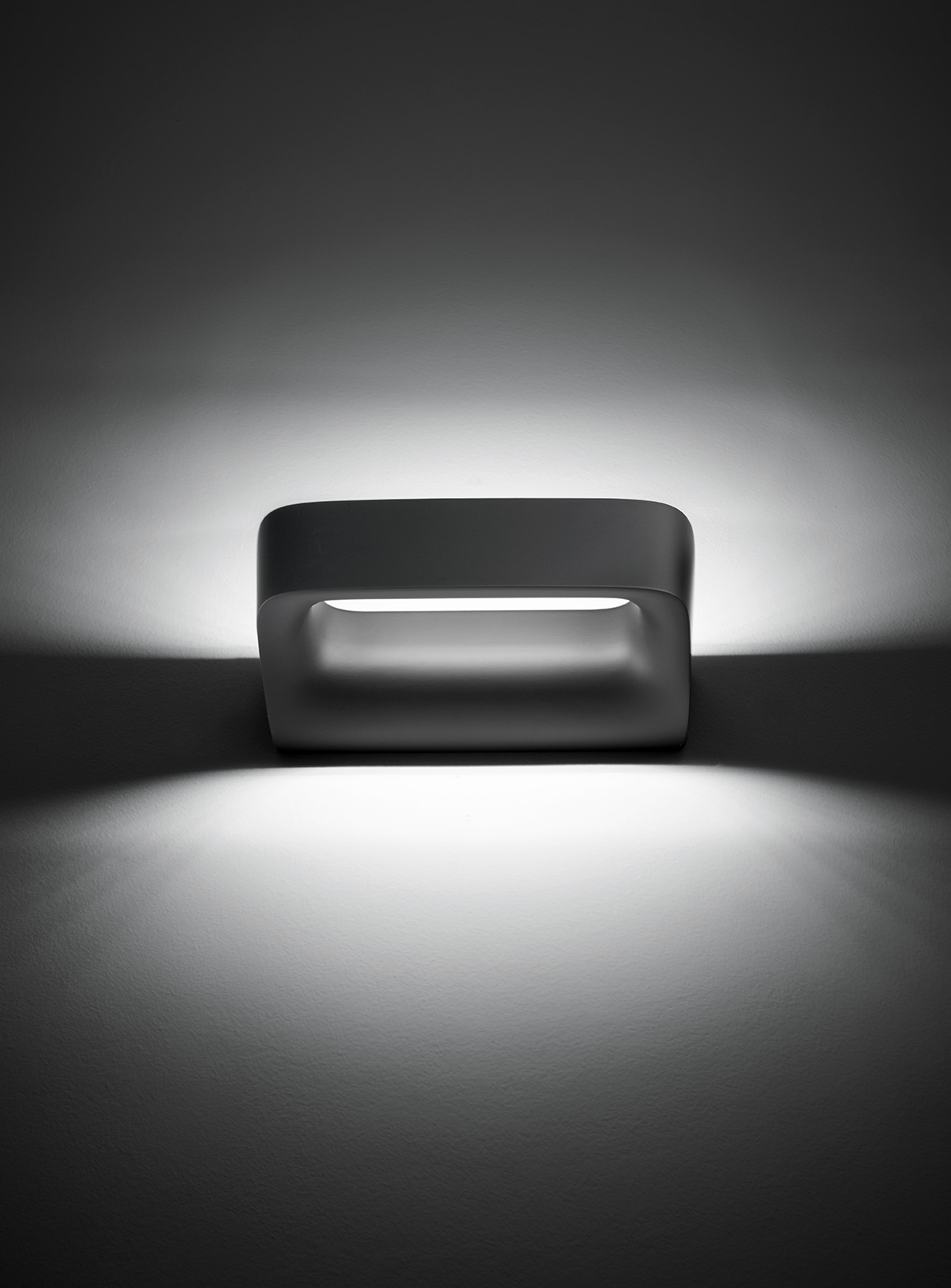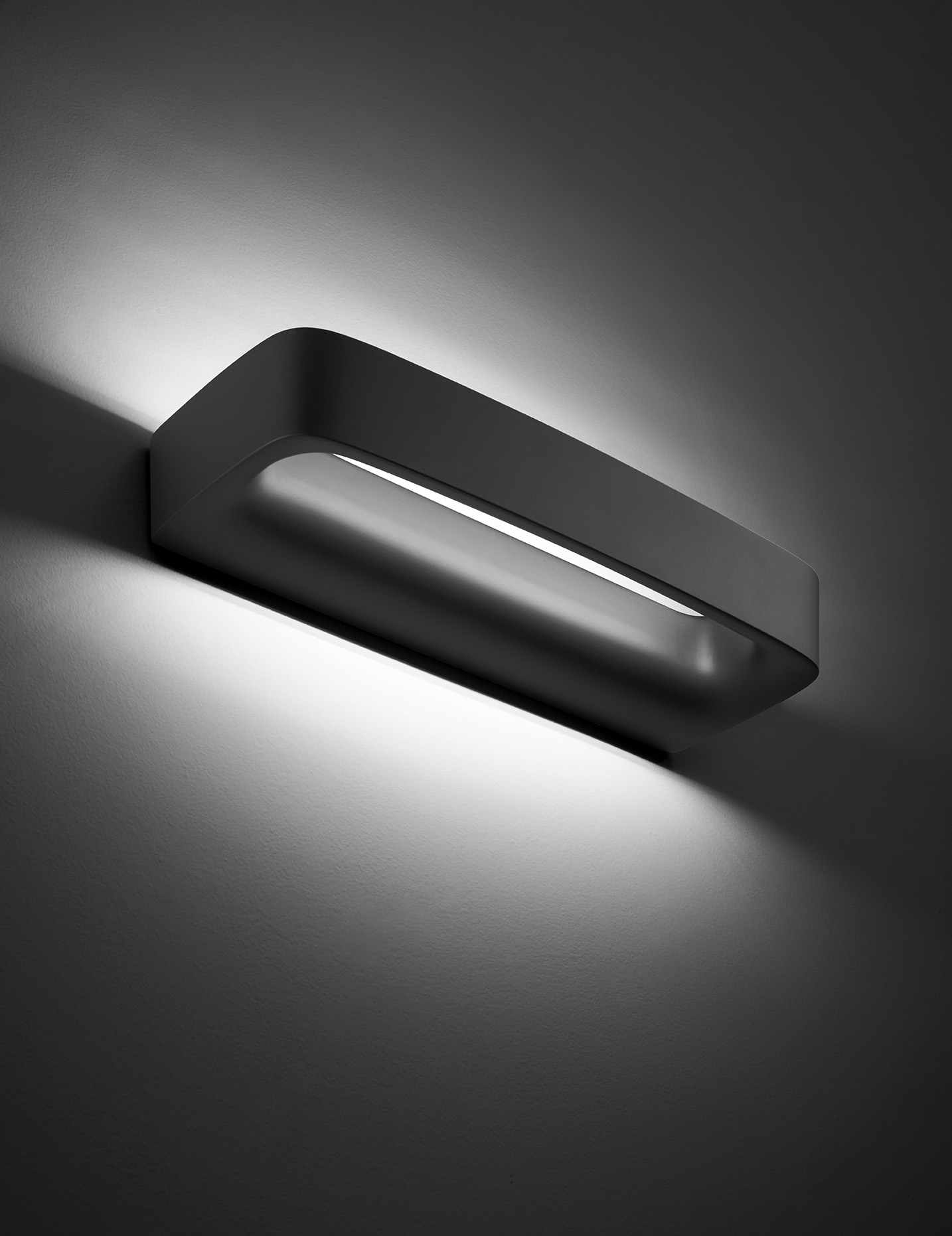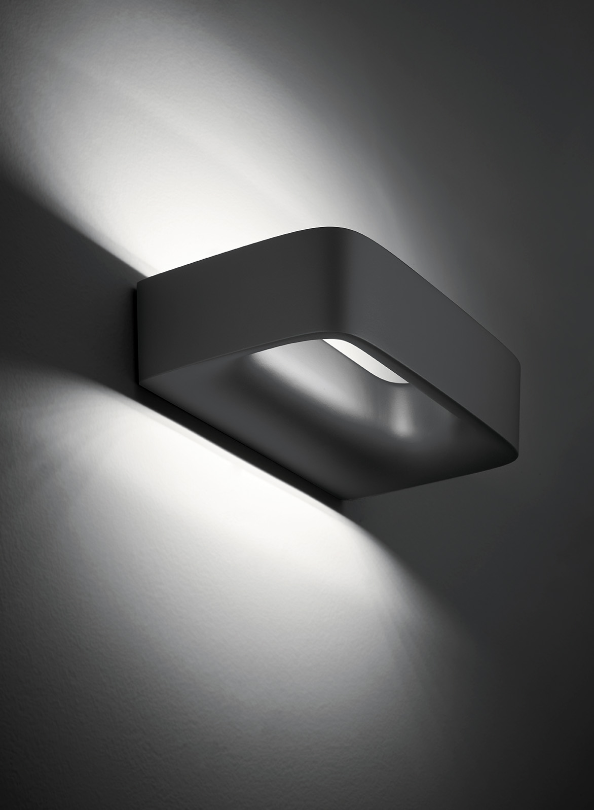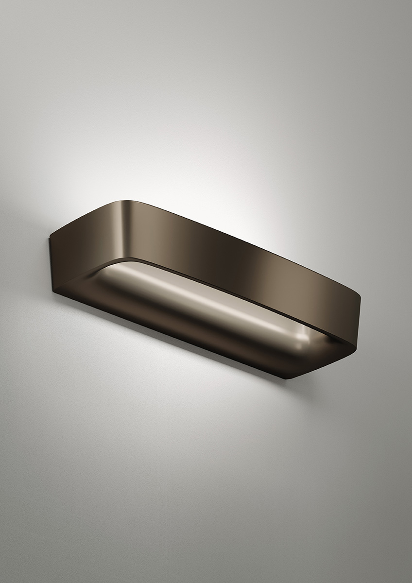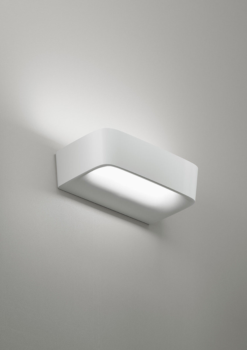 Discretion is the privilege of this wall lamp that expresses in the harmony of its shape the values associated with the concept of minimalist aesthetics. Moderation and restraint are the expressive measure of its recyclable die-cast aluminium body. It includes an integrated heat sink with LED to ensure performance, light quality and durability. The lighting is diffuse and washes the wall evenly.